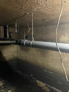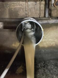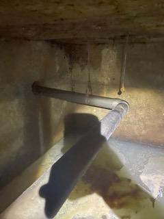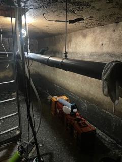 居酒屋さんの排水管です。床下にある排水管が天井から吊ってある吊ボルトから外れて、全体的に流れていきません😂洗浄込みで配管を直して行きます。地下に雨水が溜まって水抜きをするのが大変でした。 iPhoneから送信
