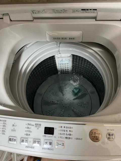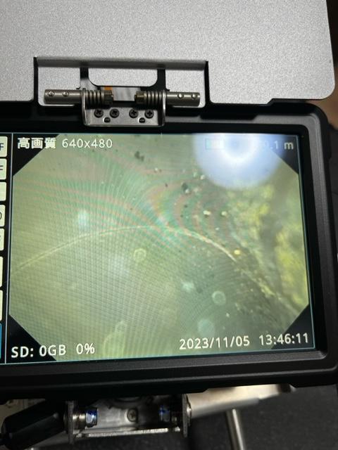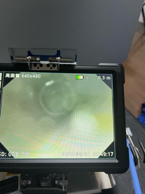 洗濯機を使うと溢れるとの依頼がありました。洗濯機を回して流すと若干溢れました。管内調査を行ない高圧洗浄を行ないました。通水試験をした所、流れは改善しました。